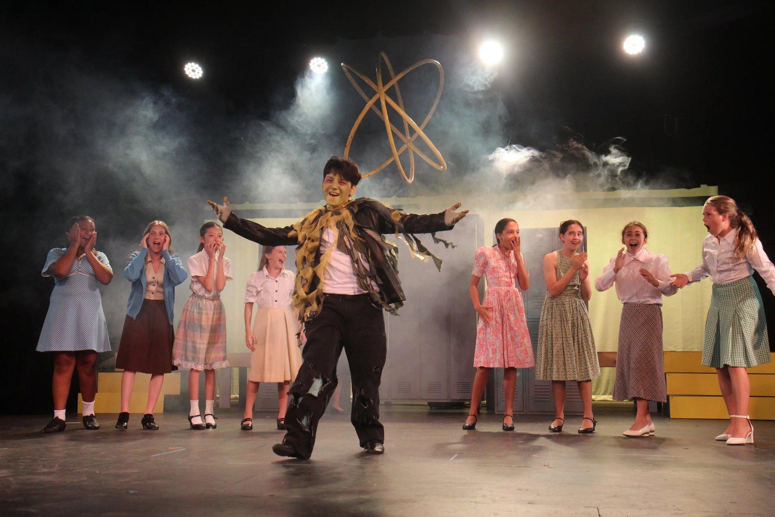 Zombie Prom is set in a nuclear 1950’s town that’s flipped upside down when Jonny, town bad boy, is caught in a radioactive explosion that turns him into a zombie. The costumes for this production were inspired by Grease and other stereotypical 1950’s high school media.